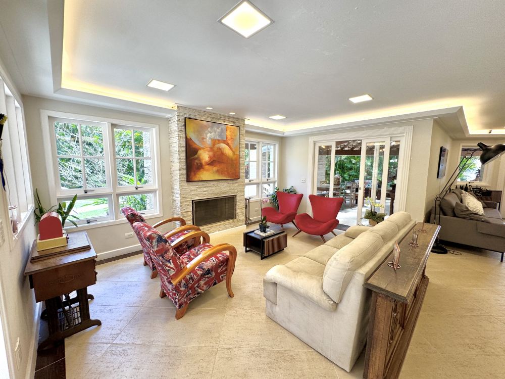 Linda casa estilo Toscana em um terreno de 4.000 m² ! Living para diversos ambientes, 4 suítes amplas para os moradores e 2 quartos para hóspedes, além de uma cozinha nova e completa, integrada ao living. A casa tem um clima familiar e aconchegante, com ambientes que realmente convidam a estar.