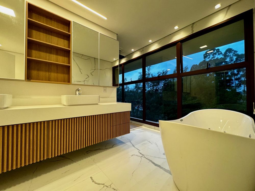 Belíssima casa nova com vista privilegiada para o verde ! Living com pé direito duplo, arquitetura moderna, ambientes integrados, cozinha com armários planejados, home, escritório, suites completas de armários, linda área externa com espaço gourmet, piscina, spa, paisagismo com sistema de irrigação e espaço para academia. Venha conhecer !
