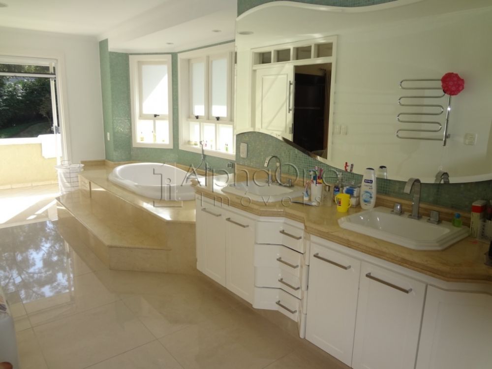 Incomparável...elegante residência, rica em detalhes, com 1189m² de terreno + área não edificante, privilegiada pelo belíssimo lazer. Acabamento impecável, living para 3 ambientes com muita luz natural, escritório, home, cozinha planejada com sala de almoço, adega, 5 suites repletas de armários, st master com closet e hidro. No lazer, sauna, piscina aquecida, spa, gazebo, sala de jogos, espaço gourmet e lindo paisagismo. Estuda permuta parcial por apartamento em Alphaville. Conheça e encante-se! - Imóvel com 5 suite(s)