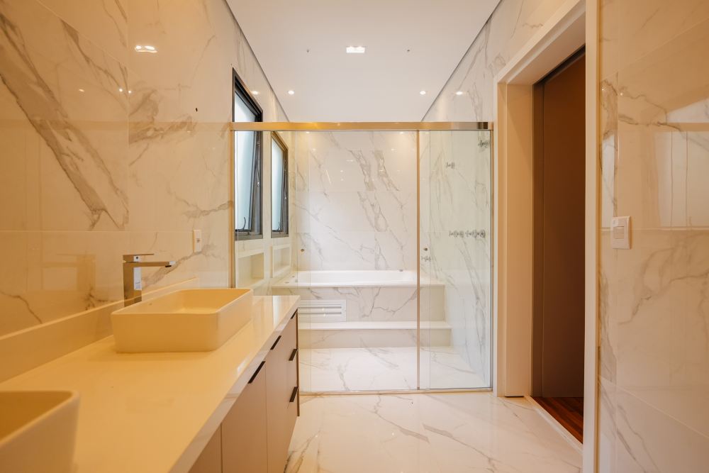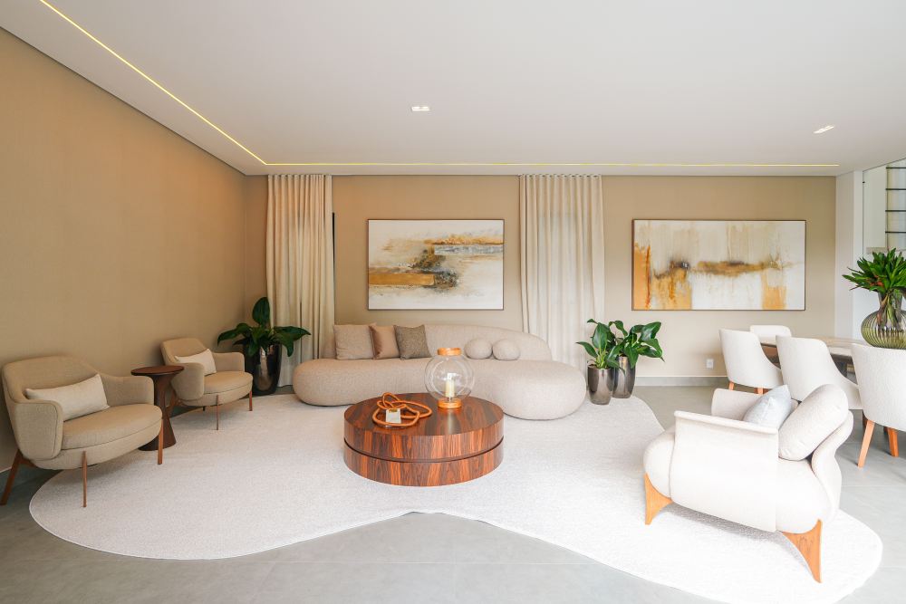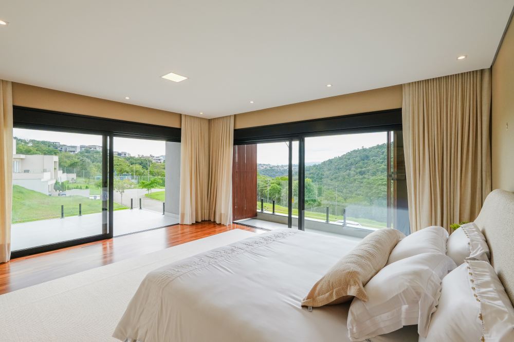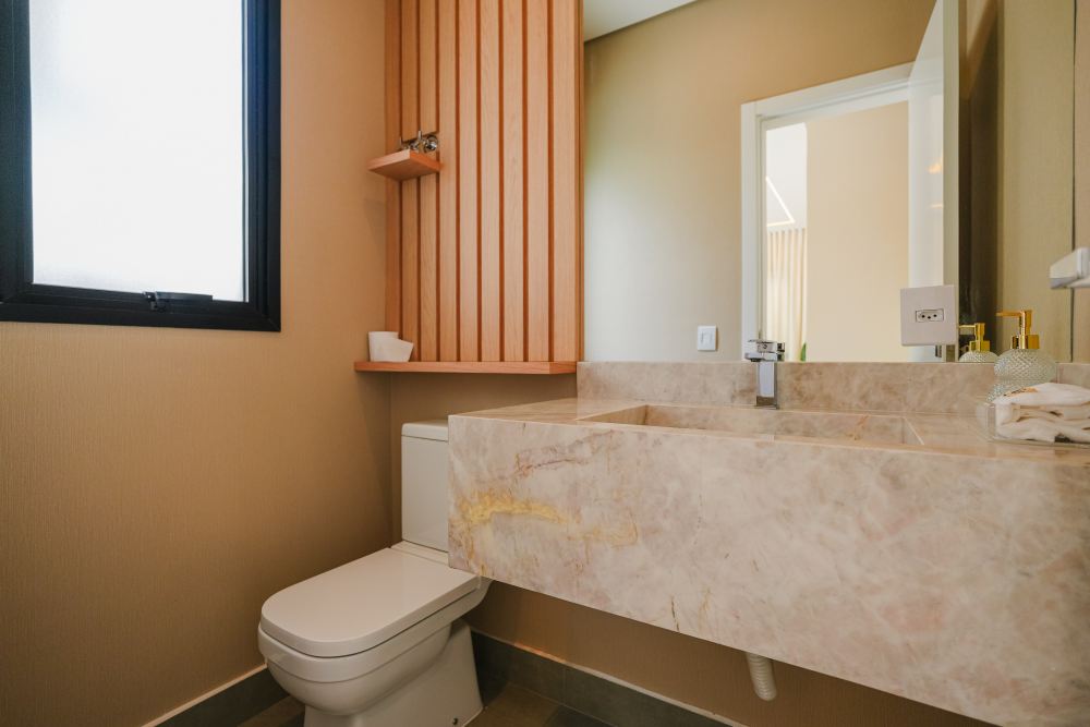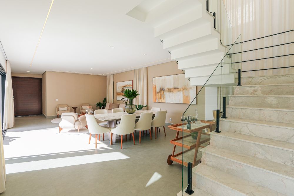 A área íntima conta com 5 suítes amplas, sendo 1 suíte no térreo, ideal para acessibilidade, hóspedes ou escritório privativo. Os ambientes sociais incluem sala de TV e sala de jantar integradas, além de lavabo, garantindo conforto no dia a dia e em ocasiões especiais.