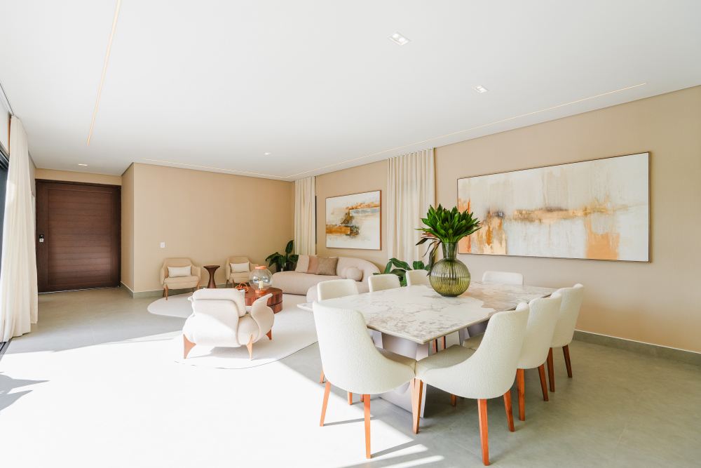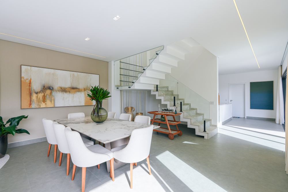 CASA NOVA, nunca habitada, MOBILIADA, com 464 m² de área construída e espaços amplos e bem distribuídos, ideal para famílias que valorizam praticidade e sofisticação. O projeto privilegia a integração dos ambientes sociais, criando uma atmosfera acolhedora e perfeita para receber amigos e familiares.