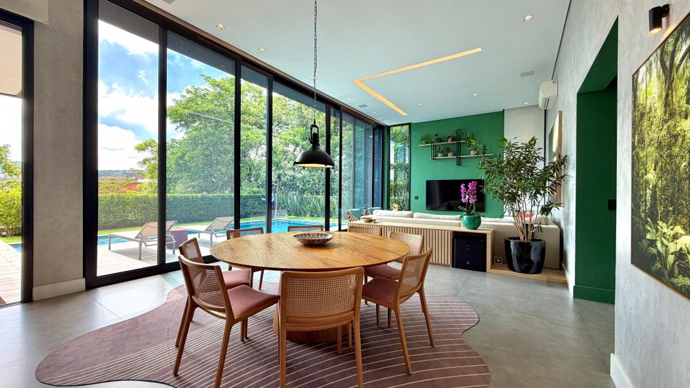 Lindíssima! Com vista para o verde, semi-térrea, mobiliada e decorada ! São 4 suítes, sendo 3 no pavimento social e uma no pavimento inferior - um projeto funcional, ideal para quem busca conforto e sofisticação em um dos condomínios mais desejados da região.